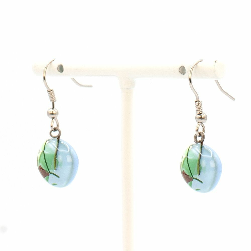 Boucles d’oreilles longues composées de perles en verre artisanal, mêlant vert d’eau et bleu ciel dans de délicats jeux de transparence. Chaque élément est façonné à la main puis monté sur des attaches en acier inoxydable hypoallergénique, un matériau fiable qui ne craint ni l’eau ni le temps. Des boucles légères, lumineuses et raffinées, pensées pour apporter une touche aérienne et naturelle à votre style.