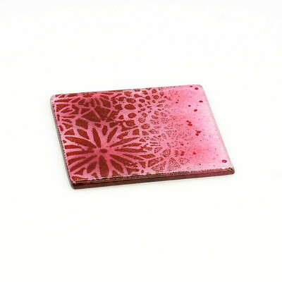 Dessous de verre ou de bouteille, en verre émaillé (émail alimentaire sans plomb) décoré de motifs floraux.
