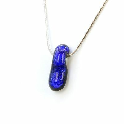 Perle en verre artisanal teintée dans la masse, associée à du verre dichroïque aux reflets vibrants. Montée sur attaches et chaîne en acier inoxydable hypoallergénique, un matériau durable qui ne craint ni l’eau ni le temps.