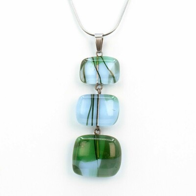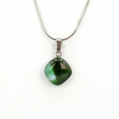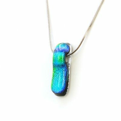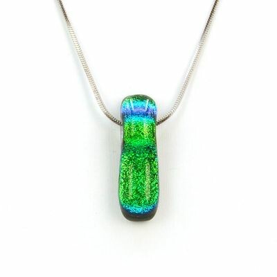 Perle en verre artisanal teintée dans la masse, associée à du verre dichroïque aux reflets vibrants. Montée sur attaches et chaîne en acier inoxydable hypoallergénique, un matériau durable qui ne craint ni l’eau ni le temps.